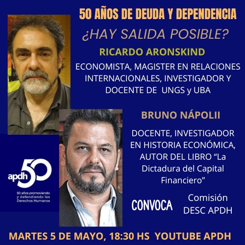 📢 La Secretaría de DESC de la Asamblea Permanente por los Derechos Humanos (APDH), lxs invita al Conversatorio: 50 años de Deuda y Dependencia ¿es posible una salida?.