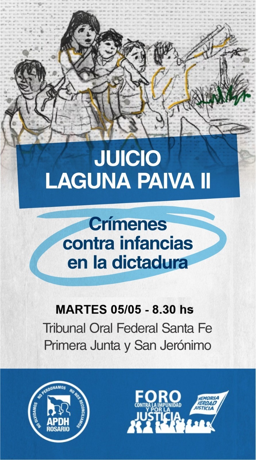 Comienza el primer juicio oral de Lesa Humanidad en la Argentina donde se logra juzgar a represores santafesinos que apresaron, abusaron, torturaron y abandonaron a 16 niñxs de dos familias parientes entre sí, luego de apresar a sus padres.