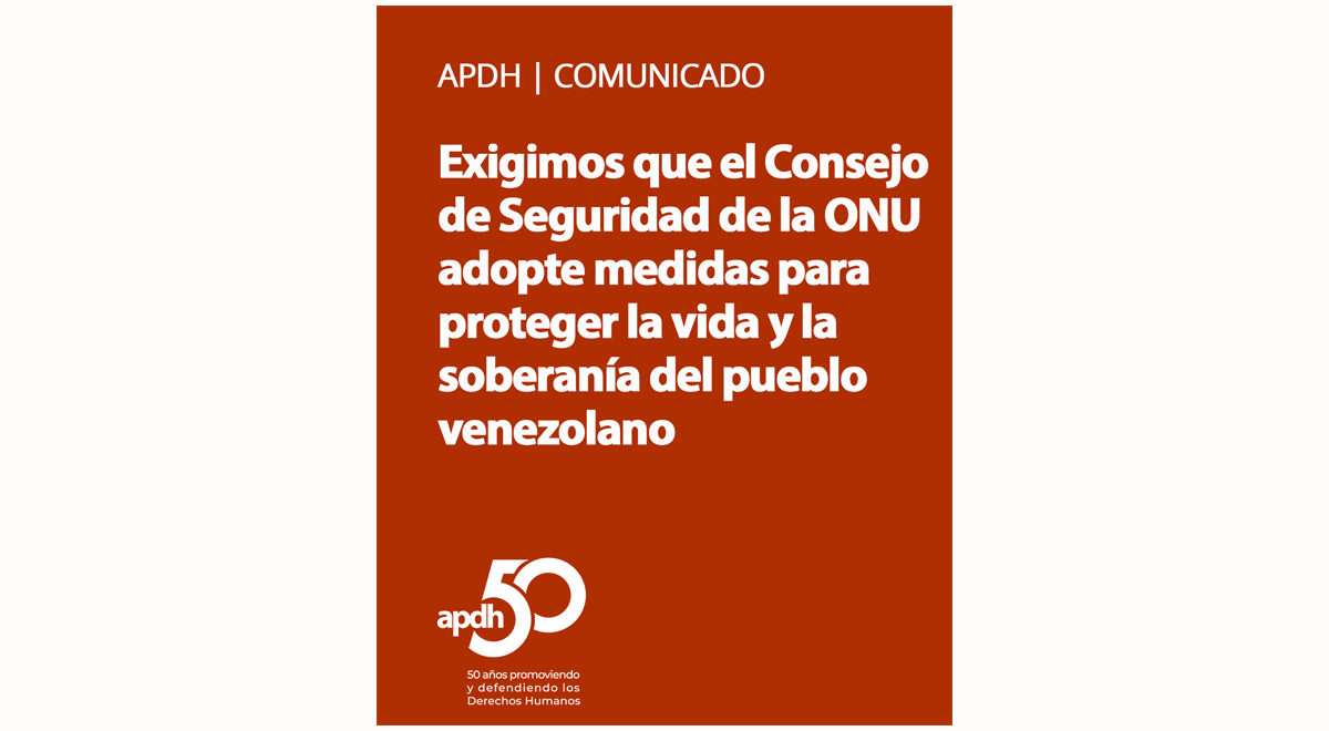 Ante los hechos ocurridos en la República Bolivariana de Venezuela, la Asamblea Permanente por los Derechos Humanos expresa su más enérgico repudio a la intervención militar de los Estados Unidos, a los bombardeos realizados, a las muertes provocadas, al secuestro del Jefe de Estado y su esposa, y al intento de imponer un gobierno subordinado a intereses externos.