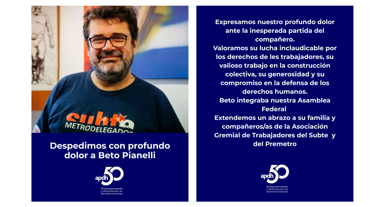 Extendemos un abrazo a su familia y compañeros/as de la Asociación Gremial de Trabajadores del Subte y del Premetro.