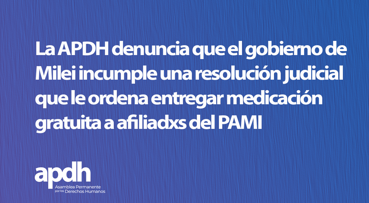 La Asamblea Permanente por los Derechos Humanos (APDH) con el especial acompañamiento de sus Regionales de Córdoba, Villa María, Río Cuarto, Río Tercero , Mendoza, Conurbano Sur, Tuyú Sur, San Juan , Rosario y Chaco Impenetrable observan con alarma la ausencia del estado de Derecho en referencia a la reposición de la gratuidad de los medicamentos que deben ser suministrados por el PAMI.