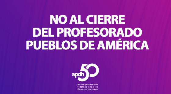 La Asamblea Permanente por los Derechos Humanos (APDH), se solidariza con el Profesorado Pueblos de América y adhiere al reclamo de la comunidad educativa y barrial por la aprobación inmediata del nuevo plan de estudios para la carrera del Profesorado de Educación Prima