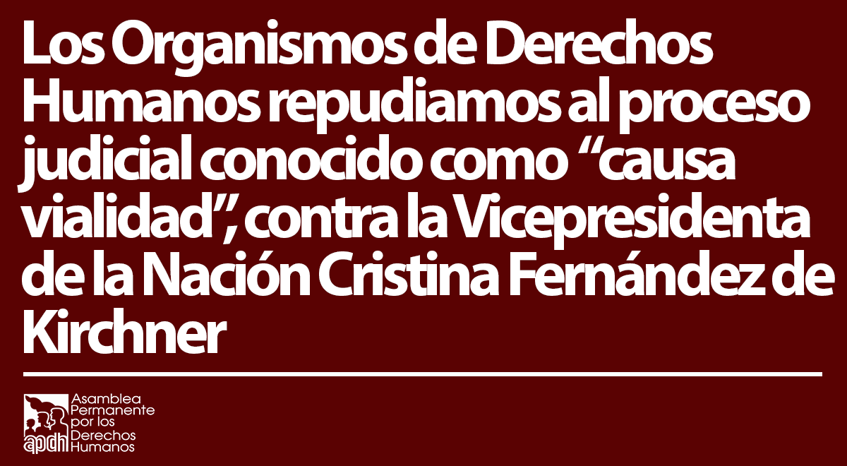 Los Organismos de Derechos Humanos abajo firmantes expresamos nuestro enorme repudio al proceso judicial conocido como “causa vialidad”, que tramita ante los tribunales de Comodoro Py contra la Vicepresidenta de la Nación Cristina Fernández de Kirchner.